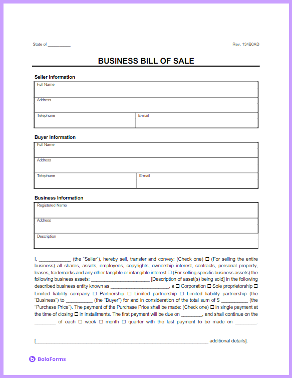 A Business Bill of Sale Template is a pre-designed document that serves as a framework for recording the sale and transfer of ownership of a business. This template outlines key information related to the transaction, ensuring that both the buyer and seller have a clear understanding of the terms and conditions.