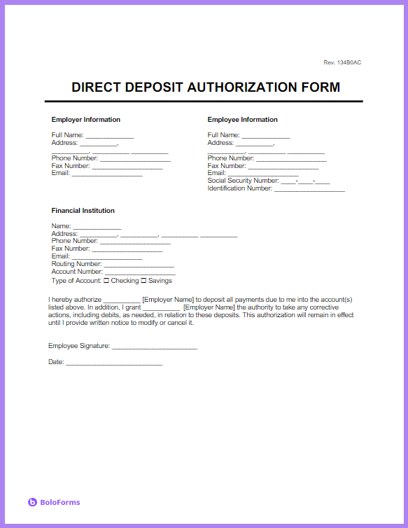 A Direct Deposit Authorization is a form or document that allows an individual or an employee to grant permission to an entity, such as an employer or a financial institution, to deposit funds directly into their bank account electronically. This process is commonly used for salary payments, government benefits, tax refunds, and other types of recurring payments.