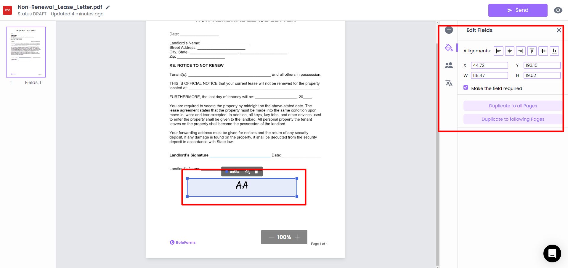 In this step, you have the flexibility to adjust the initial signature box to your preferred location for placing your initials.