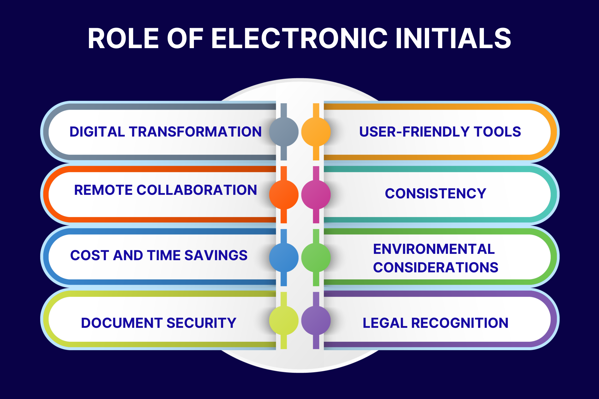 Overall, electronic initials offer efficiency and security but should be used with an understanding of their legal and technological context.