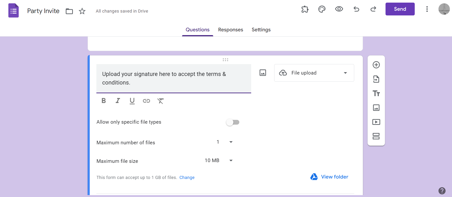Step 1. Add a "File Upload" Field: Start by adding a "File upload" field to your Google Form to collect images of electronic signatures.