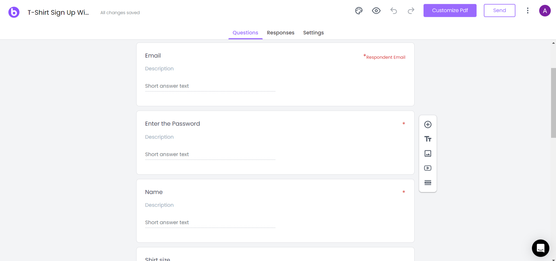 Step 2. Add a New Question: Click on the plus sign in the side menu to add a new question to your form.
