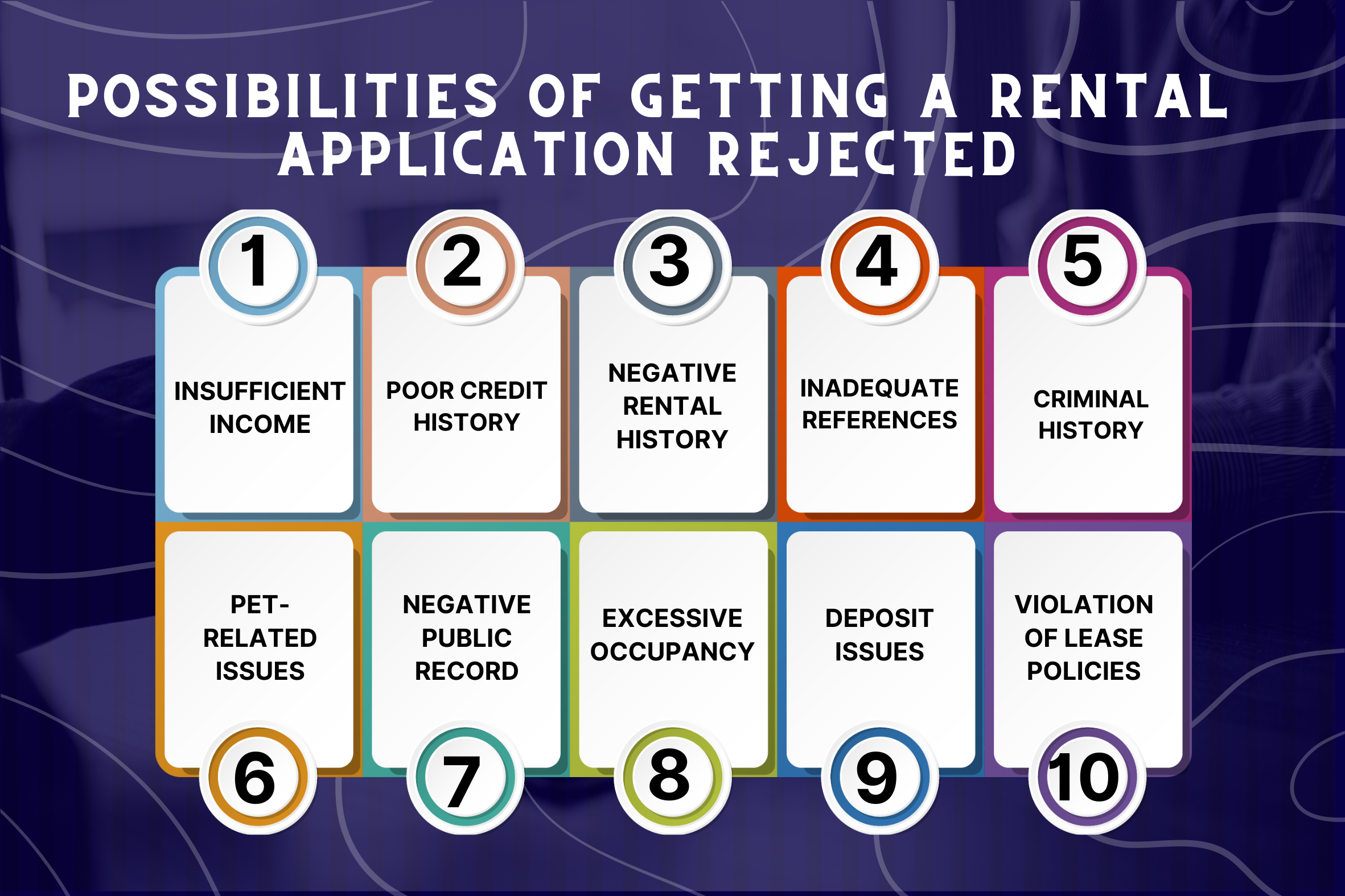 Negative Rental History: A history of eviction, non-payment of rent, or lease violations can lead to application rejection. Landlords may contact previous landlords for references.