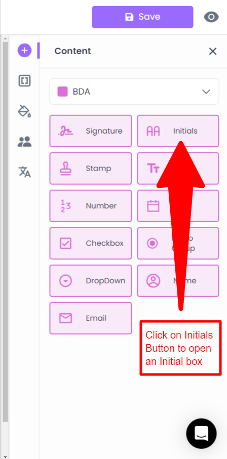 In this step, select the "Initials" option to seamlessly incorporate your initials onto the document.