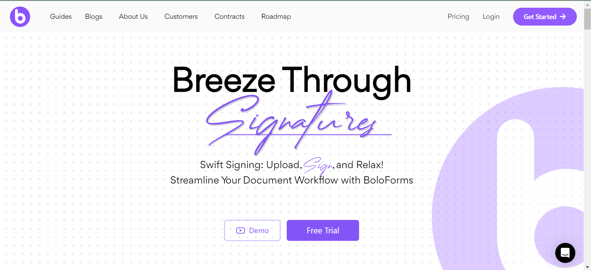 BoloForms Signature offers a user-friendly and secure platform for managing your digital signing needs. Sign up for a free trial today and experience the convenience and efficiency of digital signatures!