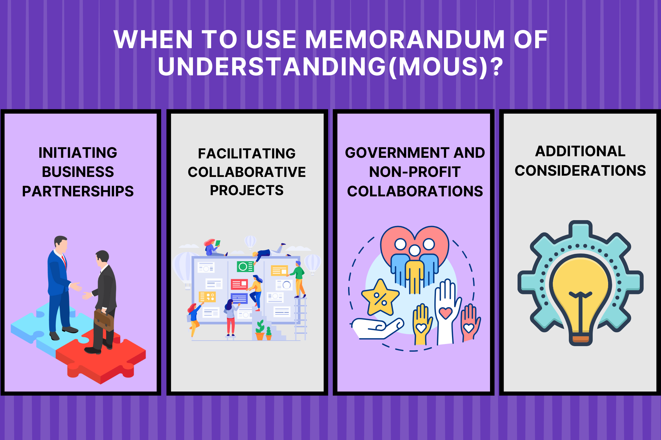 Memorandum of Understandings (MOUs) are valuable tools used in various situations where collaboration is key. Here's a breakdown of some common scenarios where MOUs prove particularly beneficial: