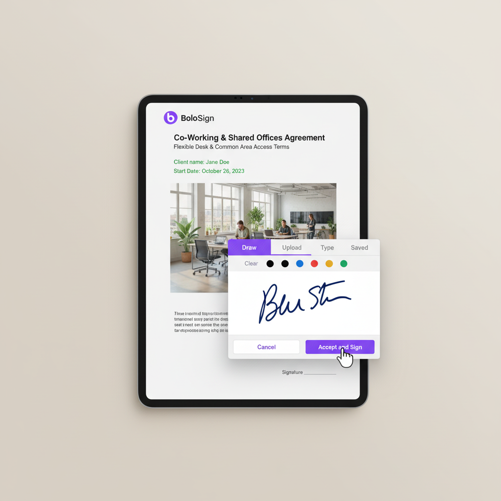 accessCo-Working & Shared Offices teams increasingly work remotely, travel to client sites, or operate from multiple locations. Paper-based signing requires physical presence. When team members or clients are mobile, the only practical solution is electronic signing that works on any phone, tablet, or laptop from any location.