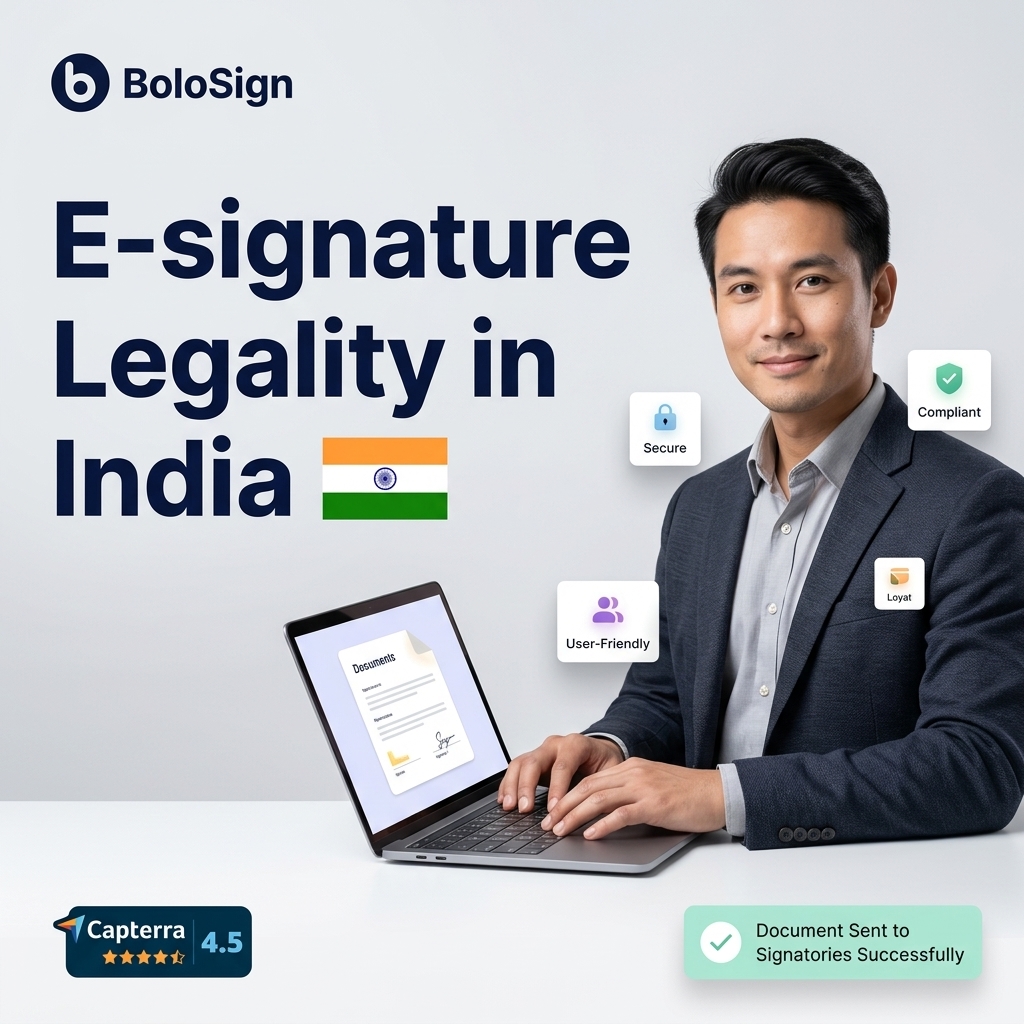 For cross-border contracts from India, ensure your e-signature platform meets both jurisdictions' requirements. BoloSign's ISO 27001 and GDPR compliance covers most international scenarios.