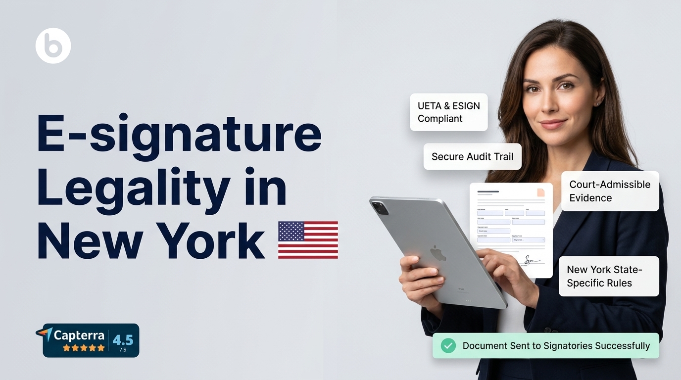 For cross-border contracts from New York, ensure your e-signature platform meets both jurisdictions' requirements. BoloSign's ISO 27001 and GDPR compliance covers most international scenarios.